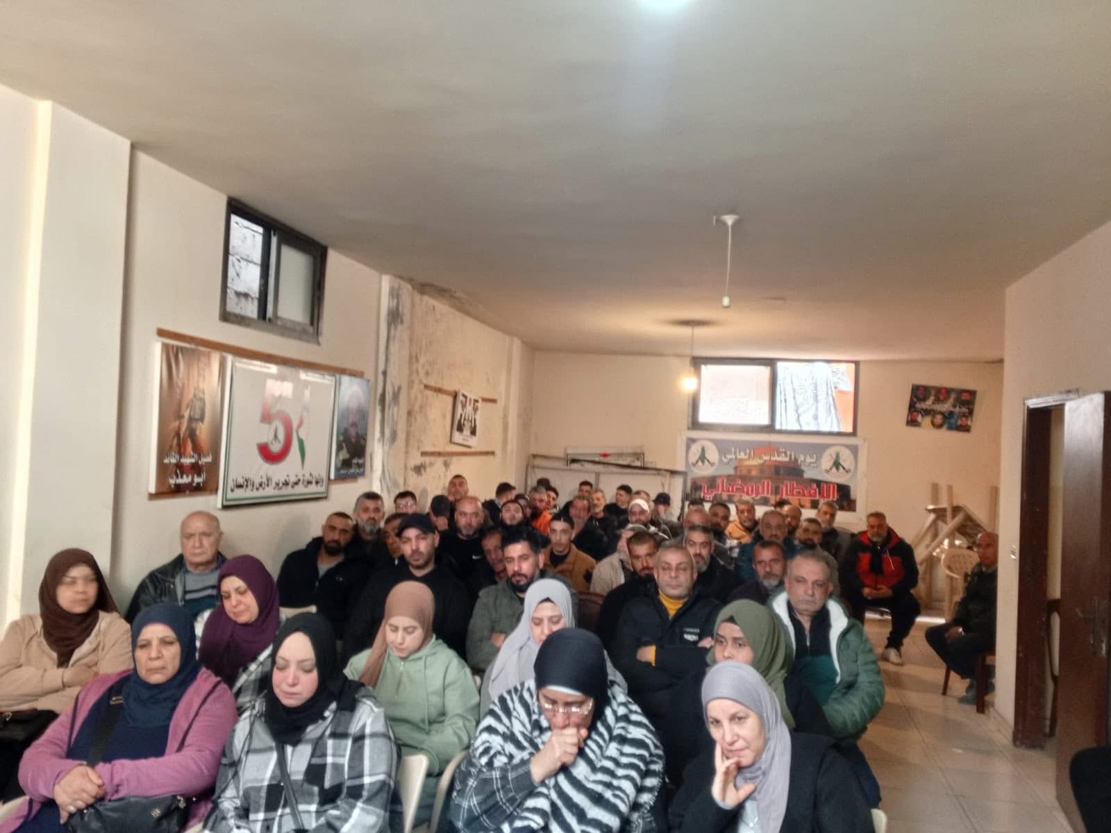 بحضور مسؤول الساحة اللبنانية عضو المكتب السياسي الرفيق غازي دبور (أبو كفاح)، وعضو المكتب السياسي الرفيق خالد عودة (أبو عدنان)، وعضو اللجنة المركزية الرفيقة ساجدة حسين، وعضو اللجنة المركزية الرفيق ابو احمد رميح وبمشاركة واسعة من كوادر العمل التنظيمي في مخيمي نهر البارد والبداوي.