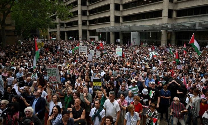 وذكرت جماعة “فلسطين أكشن سيدني” في بيان إن المتظاهرين لم يتمكنوا من مغادرة المكان لأنهم كانوا محاطين بالشرطة من جميع الجهات.