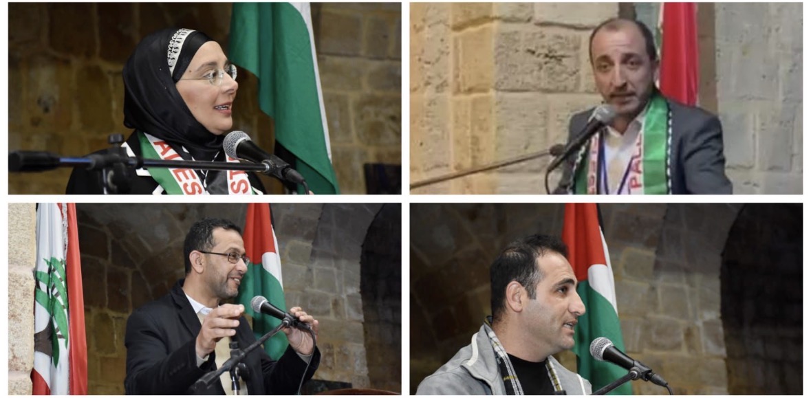 تقدم الحضور مسؤول المؤتمر الشعبي اللبناني في طرابلس المحامي عبد الناصر المصري، رئيس دائرة الشؤون الاجتماعية السابق ماجد عيد، الدكتور عدنان ونوس، أمين سر منظمة التحرير في الشمال خالد العبود، رئيس هيئة المتقاعدين الفلسطينيين ابو جهاد فياض، مسؤول حركة فتح في طرابلس جمال كيالي، ممثل الجبهة الشعبية لتحرير فلسطين أبو خالد الشهابي، مدير مدرسة قبعيت الرسمية المختلطة محمد كنعان، ممثلة الاتحاد الديمقراطي الفلسطيني خديجة البيات، وفد لجان المرأة الشعبية الفلسطينية، ممثلة نادي قاف الأديبة روزانا السيد بغدادي، الشاعر الدكتور براء كنعان، الشاعر مصطفى المراد، مدير موقع صوتنا والمدى باسم الأسعد، رئيسة ملتقى الفنانين في لبنان الفنانة التشكيلية مهى الجماس، مسؤول هيئة الإسعاف الشعبي في طرابلس حسام الشامي، مسؤولة الاتحاد النسائي الوطني في طرابلس نسرين المصري، المربي مايز عساف، رئيس جمعية فكر ونور علي صالح، الفنانة التشكيلية فاطمة السيد، الدكتورة نرمين مرعي، أسامة ذوق، الحاج حسين الكردي، عضو قدامى القوات المسلحة عبد الغني سيور، وفد كشاف الشباب الوطني.