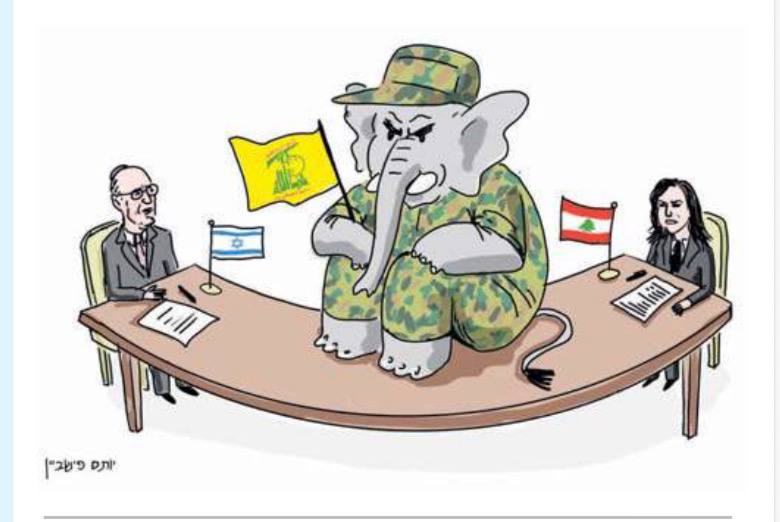 ويتكامل مع هذا المزاج العام المتشكك في إسرائيل حيال ما يرد من تصريحات عالية حول سلام محتمل مع لبنان، العنوان الرئيس لصحيفة “يديعوت أحرونوت” اليوم، وهو لا يخلو من السخرية: “تاريخ في واشنطن ونيران في الشمال”. وتتجلى السخرية بوضوح تام في رسم كاريكاتير تنشره الصحيفة اليوم، وفيه يبدو معوض ولايتر على طرفي طاولة المفاوضات، وعليها رايتان لبنانية وإسرائيلية، وحزب الله على شكل فيل يتربع في وسط الطاولة مع علمه الأصفر مع البندقية الرشاشة.